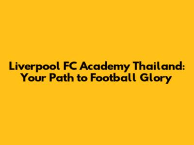 Liverpool FC Academy Thailand: Your Path To Football Glory